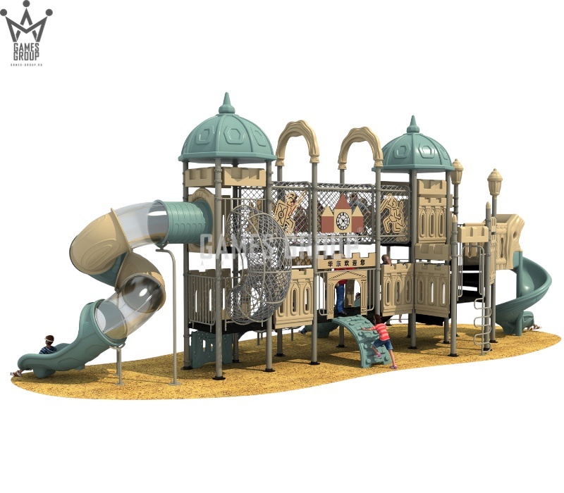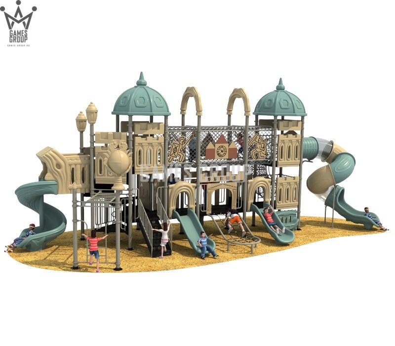 Этот продуманный комплекс идеально подходит для небольших дворов, детских садов, парков и торговых центров, где важно совместить компактность с разнообразием игровых возможностей.