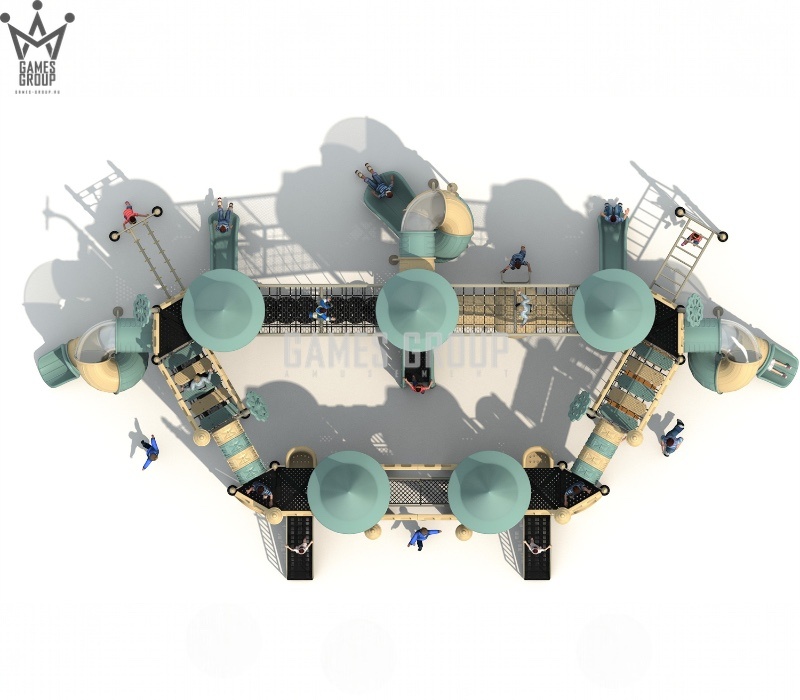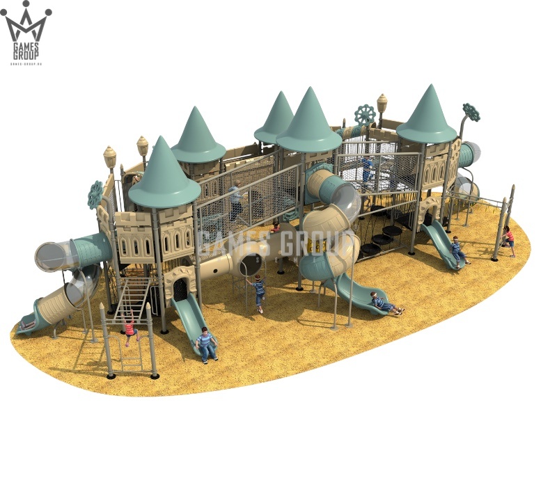 «Королевство игр» — просторная детская площадка размером 1780 × 950 × 630 см — идеальное решение для парков развлечений и рекреационных зон.