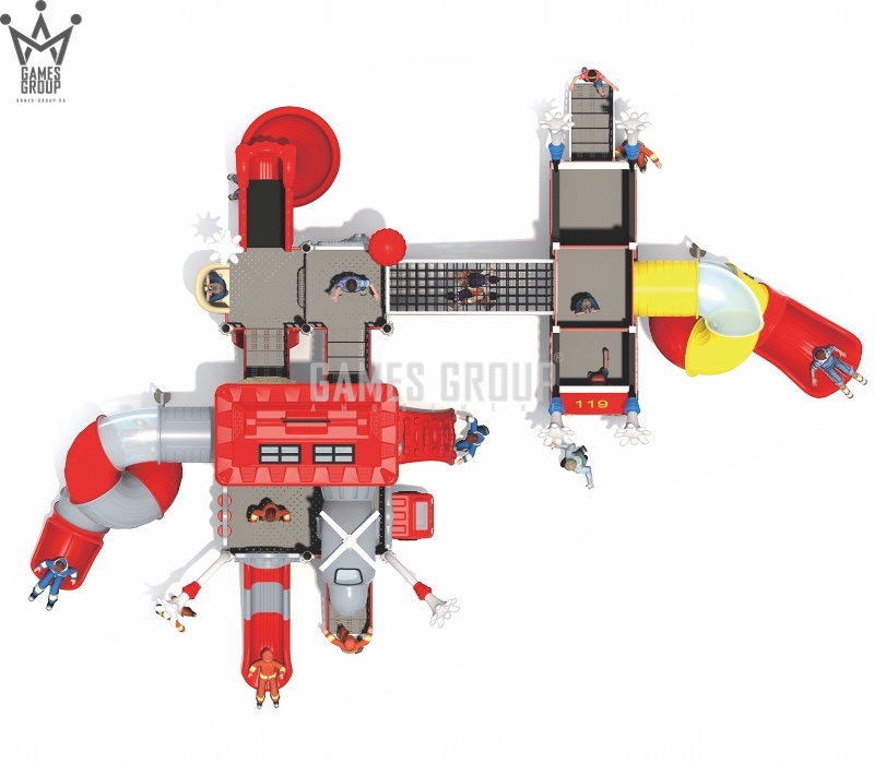 «Пожарная машина» — это не просто игровая площадка, а увлекательный тематический комплекс, где дети погружаются в мир настоящих героев‑пожарных.