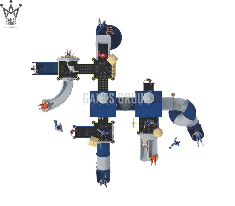 Габариты 1050 × 970 × 590 см позволяют разместить площадку как в частном дворе, так и на территории парка, детского сада или жилого комплекса.