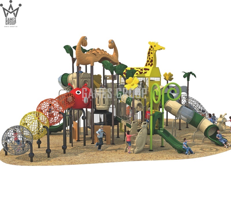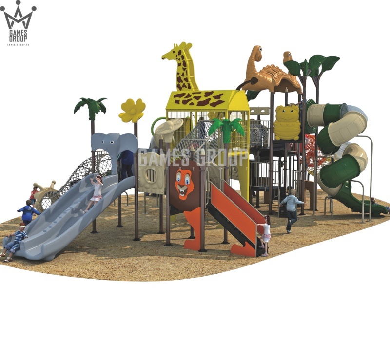 Приглашаем юных натуралистов в увлекательный «Зоопарк» — яркую и безопасную игровую площадку, где элементы оформлены в виде обитателей настоящего зверинца.