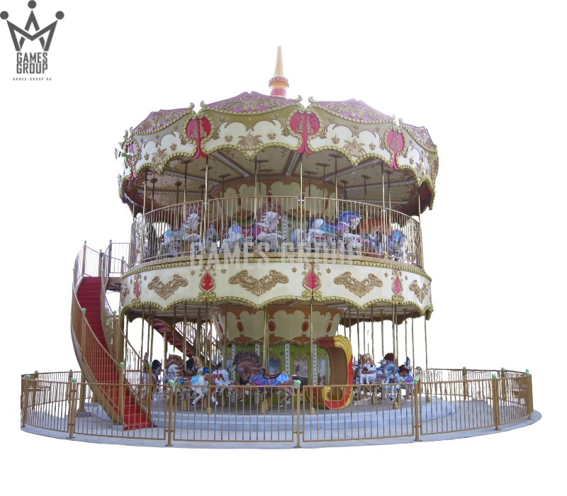 Двухэтажная карусель высотой 14 метров рассчитана на 68 посетителей одновременно.