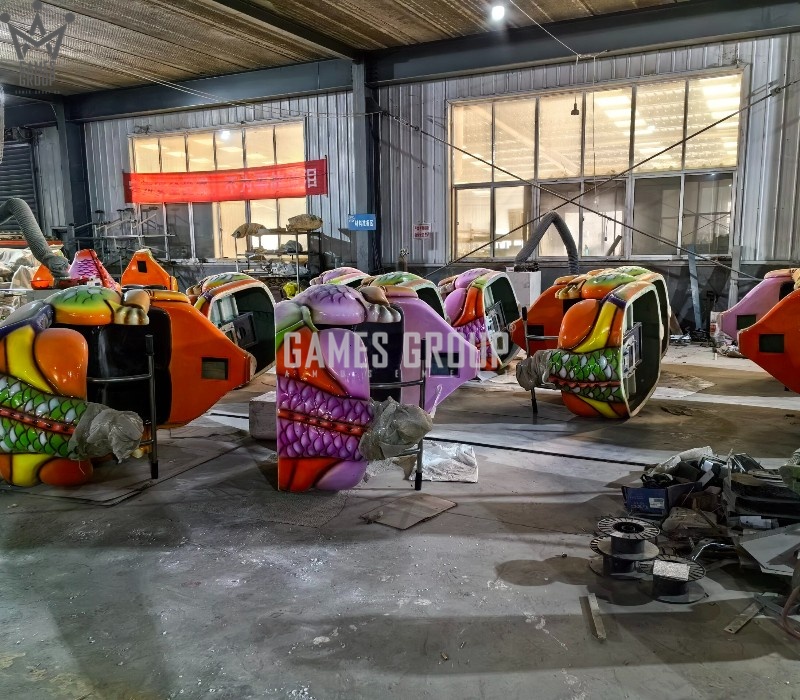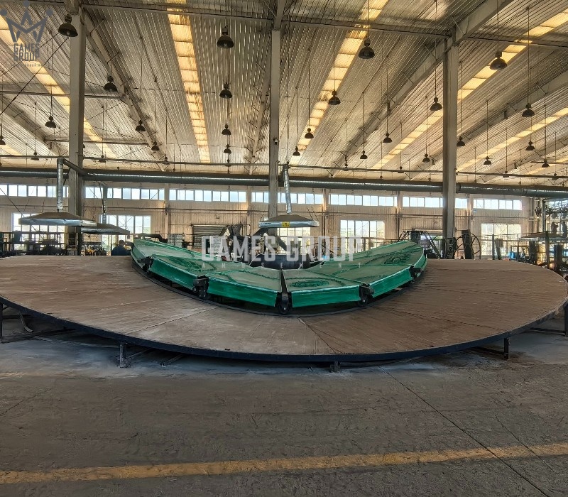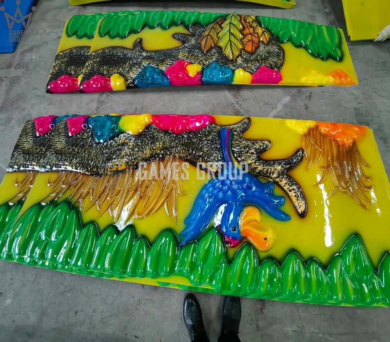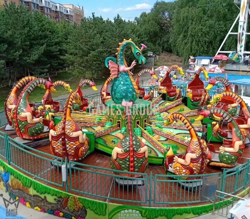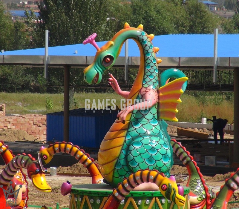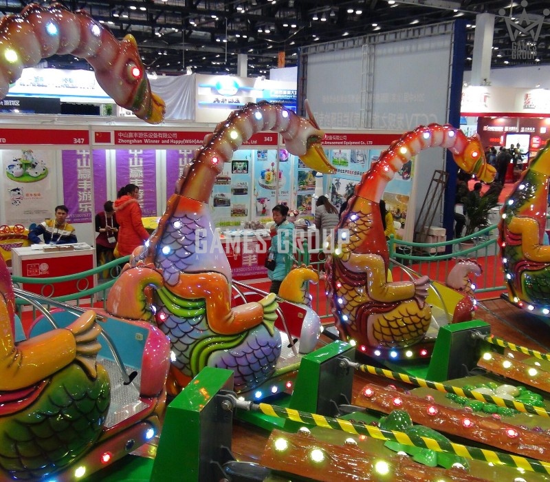Уникальный дизайн. Карусель выполнена в виде платформы с динозаврами, которая постепенно ускоряется.