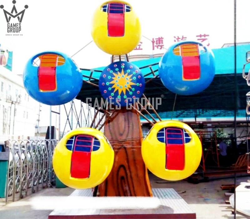 «Колесо‑малыш» — компактное колесо обозрения высотой всего 5 метров — идеальное решение для детских зон, парков развлечений и торговых центров.