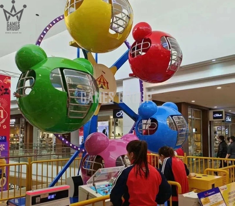 «Мышки» — миниатюрное колесо обозрения высотой 5 метров — идеальное решение для детских зон парков, торгово‑развлекательных центров и игровых площадок.