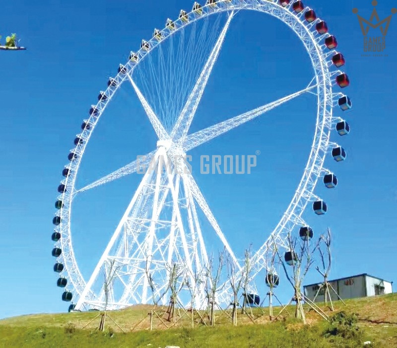 «Звезда» — грандиозное колесо обозрения высотой 88 — 100 метров — идеальное решение для крупных парков развлечений, городских пространств и туристических кластеров премиум‑класса.