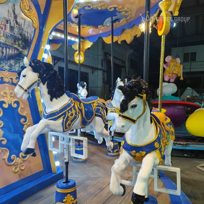 Семейный аттракцион Свадебная карусель «Вальс» станет настоящим украшением парка, торгово-развлекательного центра или праздничной площадки. Сочетая в себе эстетику классического карусельного дизайна с элементами свадебного декора, он создаёт атмосферу лёгкого праздника. Подходит детям от 1,5 лет в сопровождении взрослых и от 3 лет без сопровождения. Неспешное вращение, плавный подъём дарит детям и их родителям приятные ощущения.