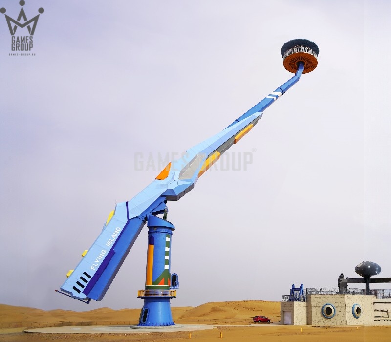 При запуске платформа плавно поднимается и начинает медленное вращение, позволяя гостям любоваться панорамой со всех ракурсов.