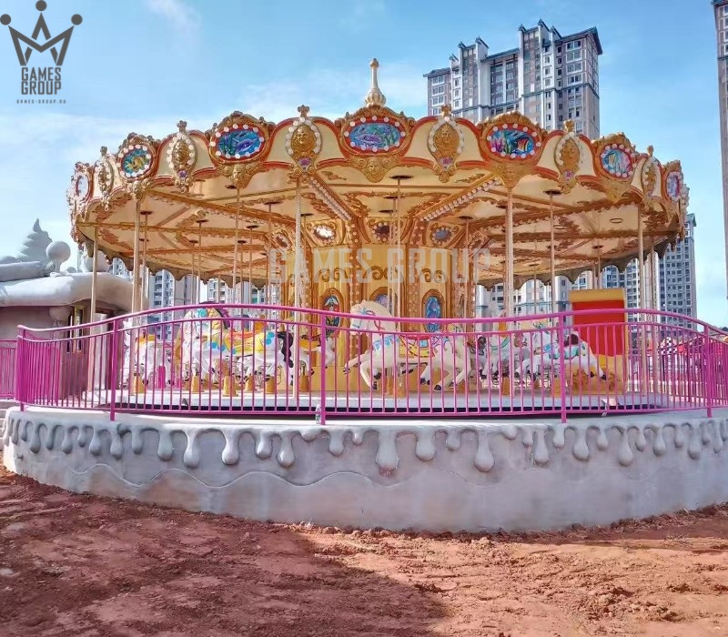 «Флоренция» — масштабная свадебная карусель, рассчитанная на 36 посадочных мест. Это эффектный парковый аттракцион, который органично впишется в пространство парка развлечений, городской зоны отдыха или торгово‑развлекательного комплекса. Подходит для гостей от 6 лет: детей, семей, молодожёнов и туристических групп.