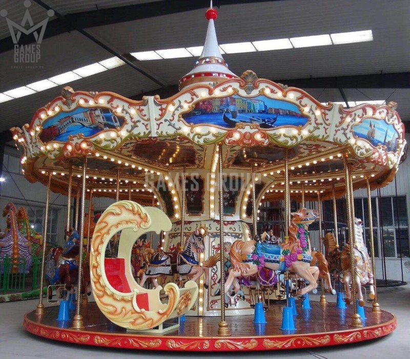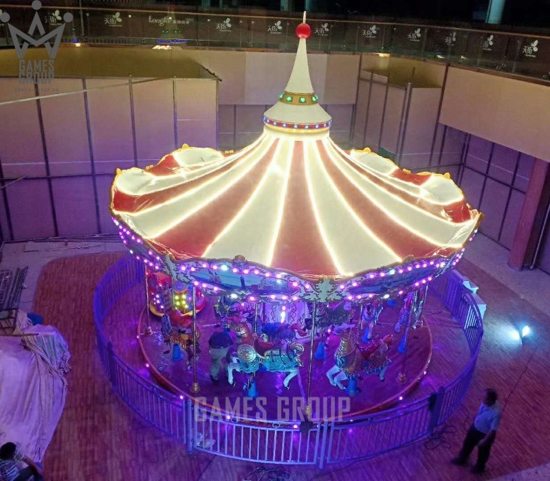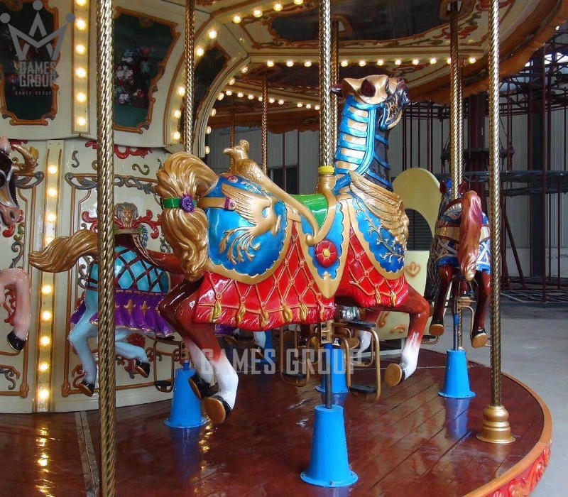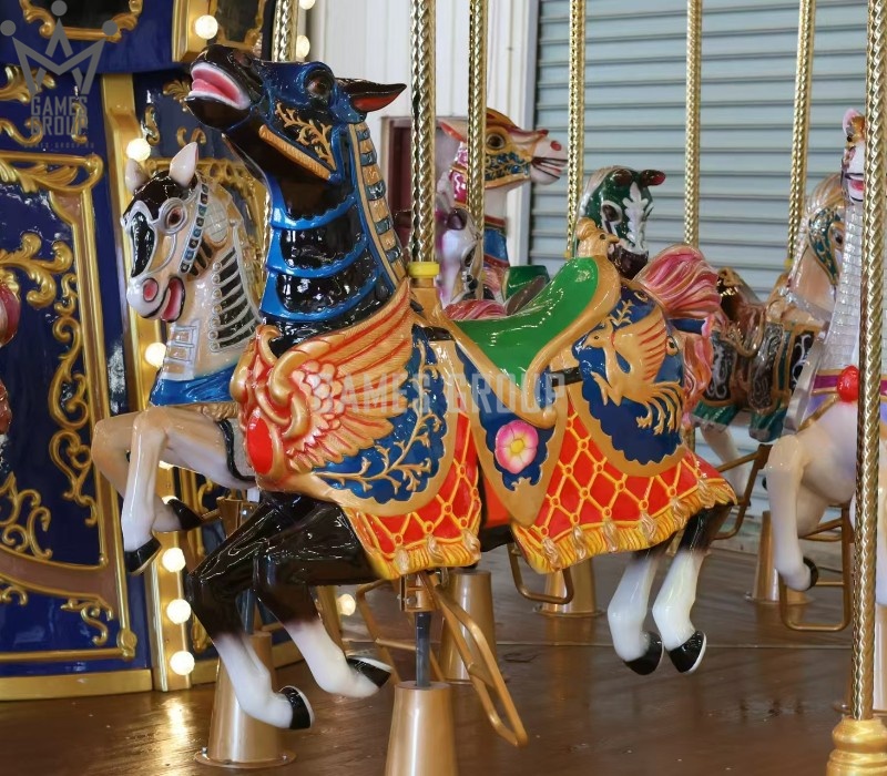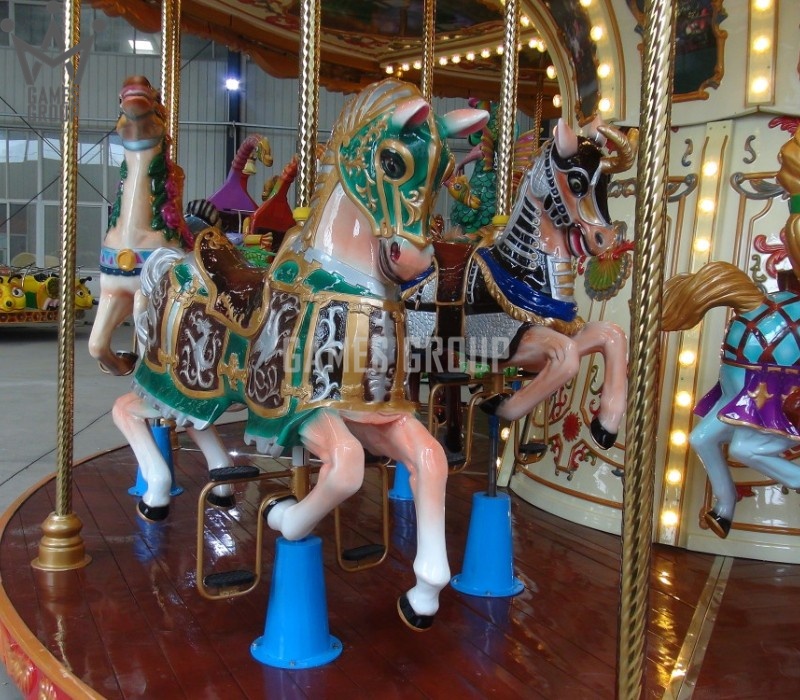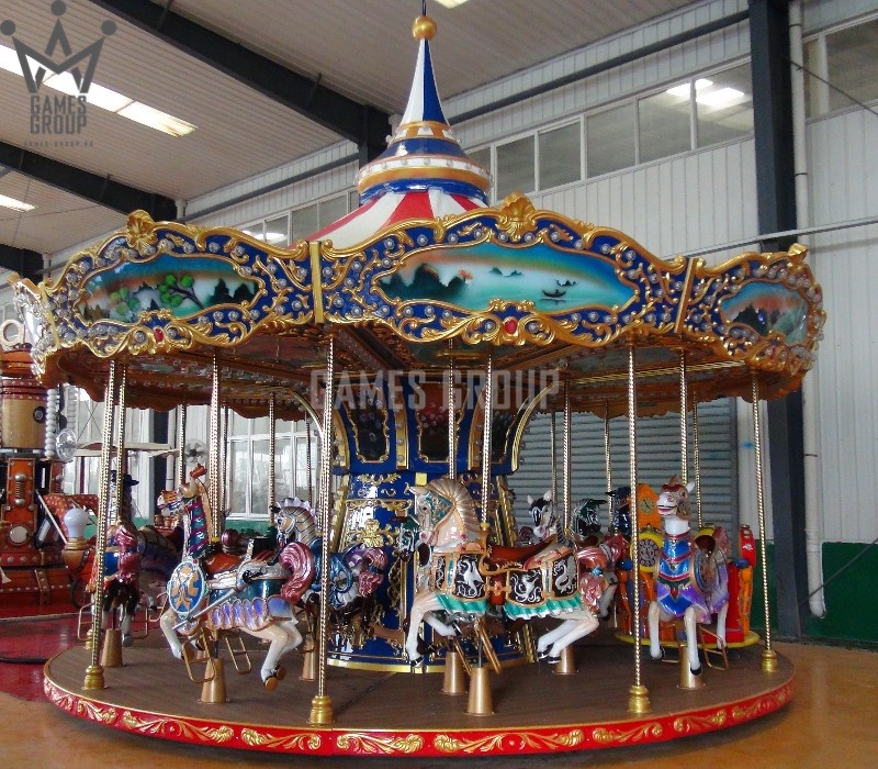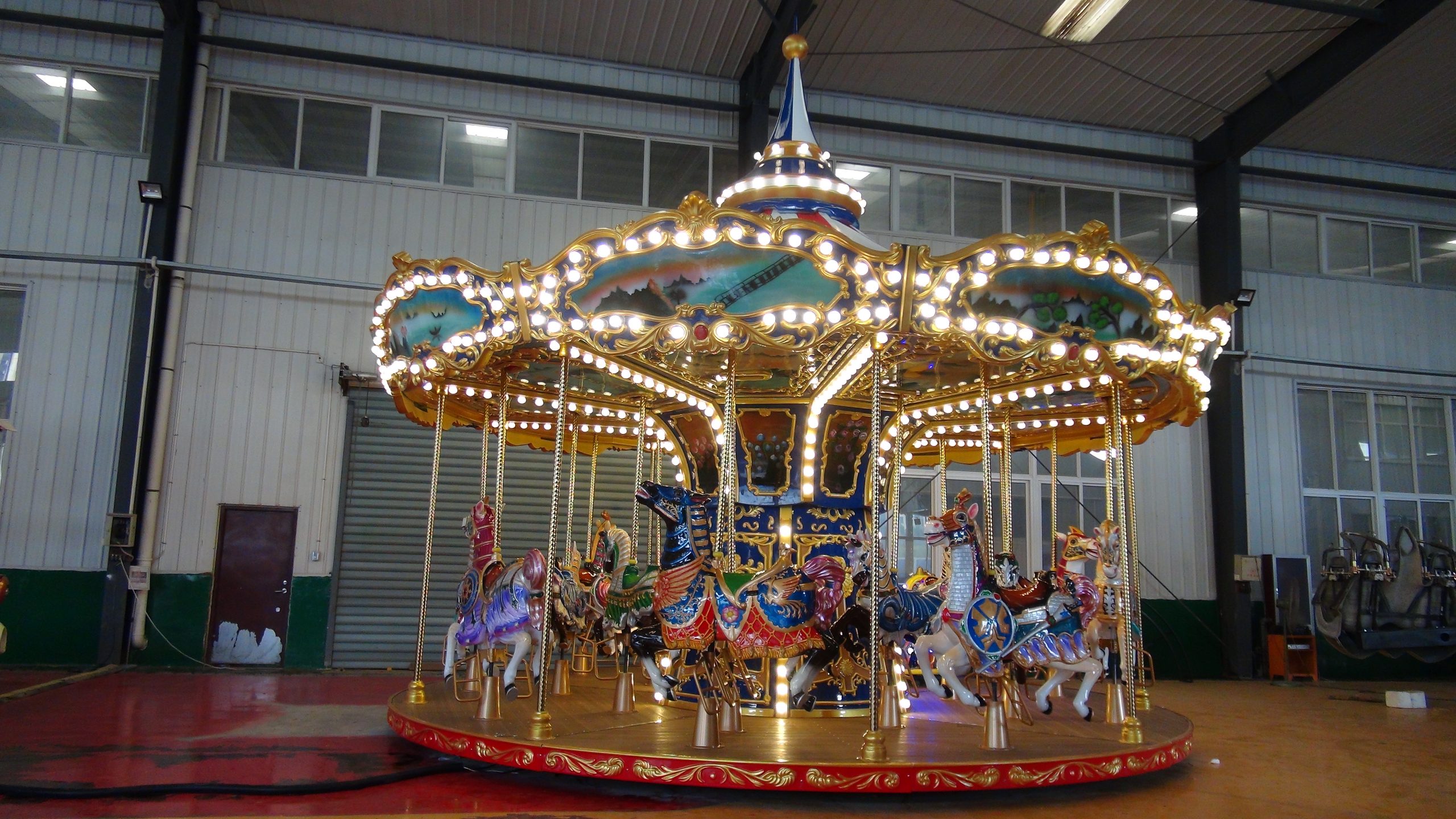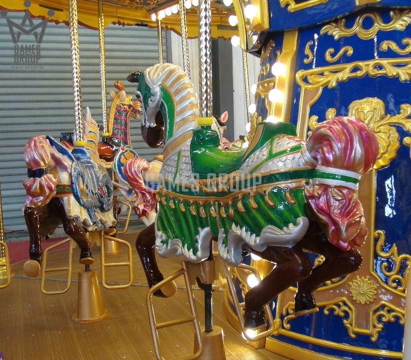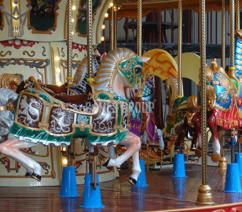 | Принцип работы | вращение по кругу, подъем и спуск сидений лошадок автоматически |