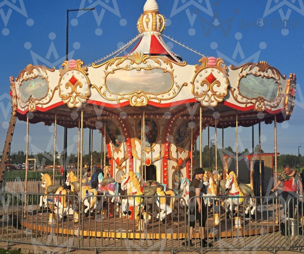 Свадебная карусель от Геймс Групп – это уникальное решение для парков, городских площадок и тематических зон отдыха. Вместимость 24 человека и диаметр 10 м обеспечивают одновременный прием большой аудитории, что значительно повышает доходность. Скорость 0,8 м/сек гарантирует комфорт и безопасность, а мощность 6 кВт —надежную и экономичную работу аттракциона, обеспечивает быструю окупаемость и стабильный доход.