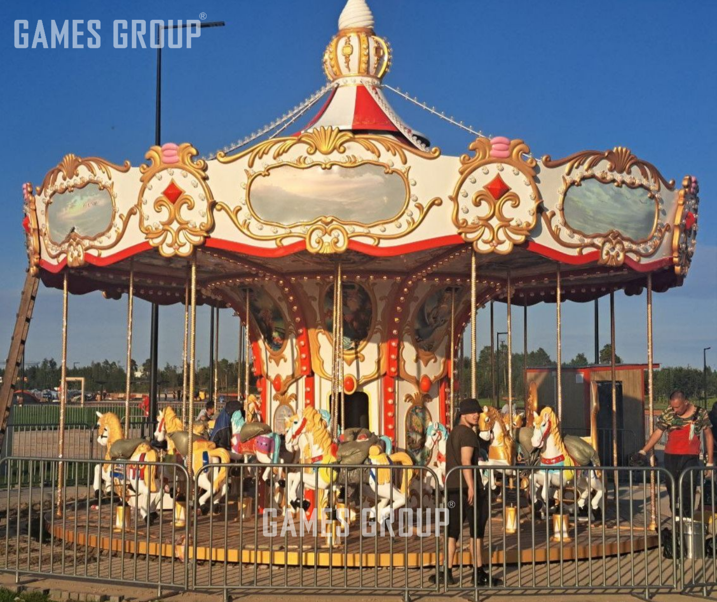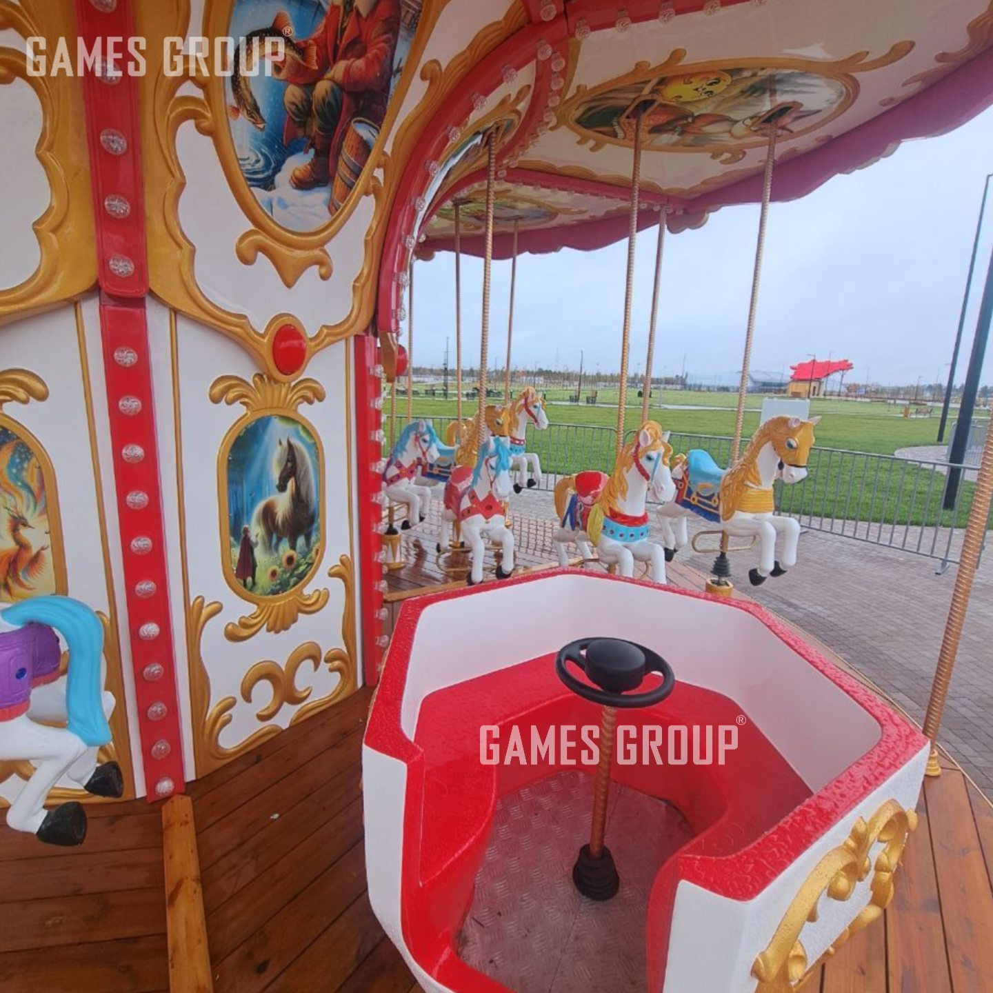 Свадебная карусель от Геймс Групп – это уникальное решение для парков, городских площадок и тематических зон отдыха. Вместимость 24 человека и диаметр 10 м обеспечивают одновременный прием большой аудитории, что значительно повышает доходность. Скорость 0,8 м/сек гарантирует комфорт и безопасность, а мощность 6 кВт —надежную и экономичную работу аттракциона, обеспечивает быструю окупаемость и стабильный доход.